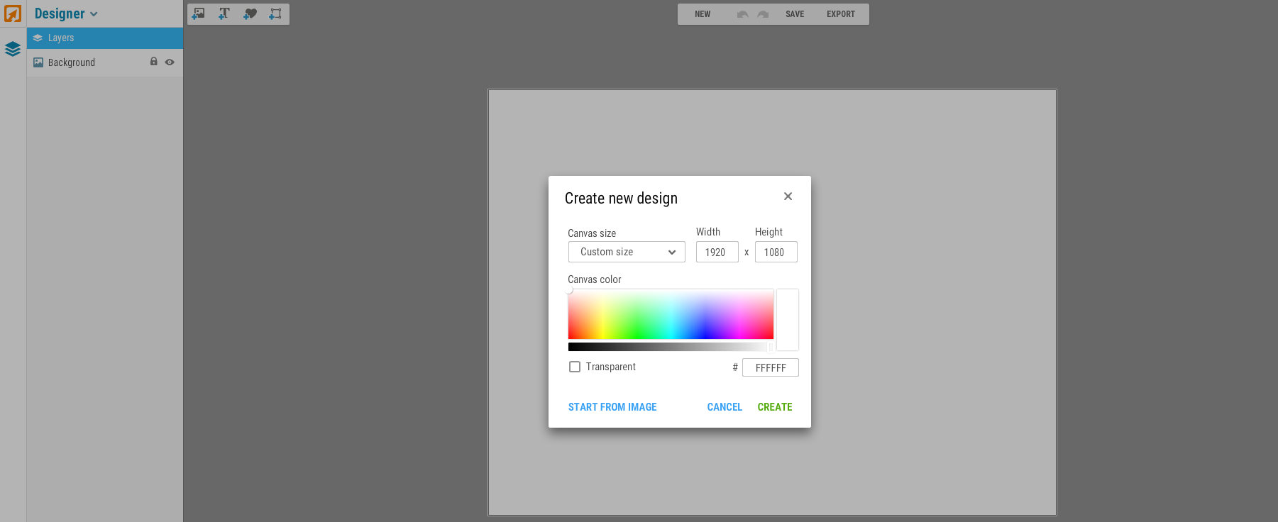 Here you can either upload your base photo you want to work with or you can set constraints for size. This part is largely up to you and what you want to do.