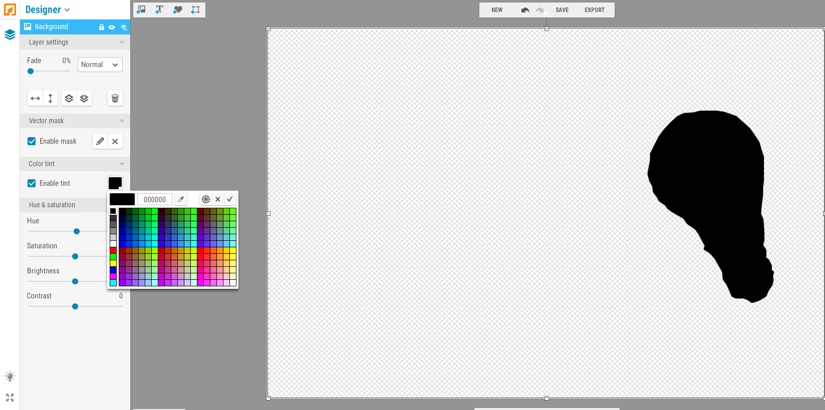 Click anywhere on the color band to change the color. Slide the slider to black in order to create a silhouette image.